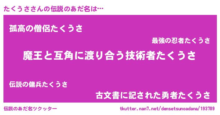 | ヒーロー風カッコイイあだ名 | 『愛の使者たくうさ』『黄金騎士タク』 |
