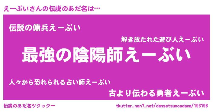 | 意味不明あだ名 | 『えーぶいフォーエバー』『自称えーぶい』 |