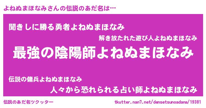 | ファンタジー風あだ名 | 『エターナルヨネヌマホナミー』 |
