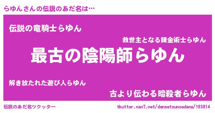 | 意味不明あだ名 | 『らゆんフォーエバー』『ペロリンらゆん』 |