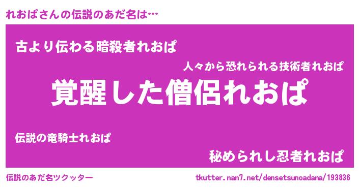 | 男性向けラノベタイトル風あだ名 | 『れおぱの嫁は女の子じゃないと思った?』 |