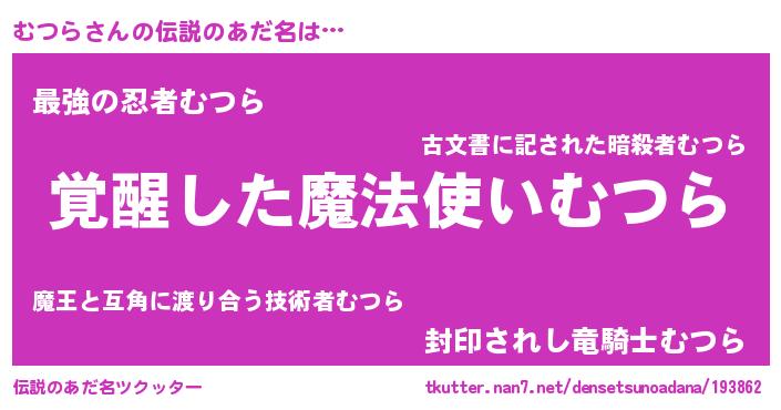 | ヒーロー風カッコイイあだ名 | 『幻影騎士ムツ』『ウルトラむつらマン』 |