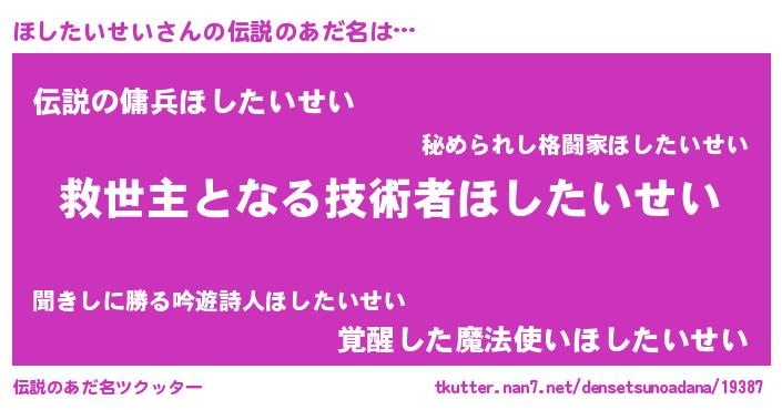 | ヒーロー風カッコイイあだ名 | 『天空の使者ほしたいせい』 |