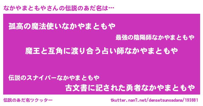 | 意味不明あだ名 | 『自称なかやまともや』 |