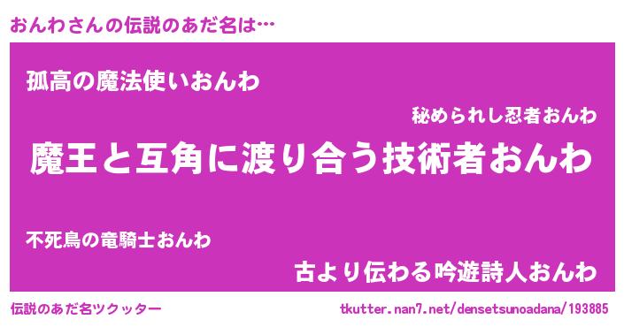 | 意味不明あだ名 | 『自称おんわ』『エリンギ科おんわ属』 |