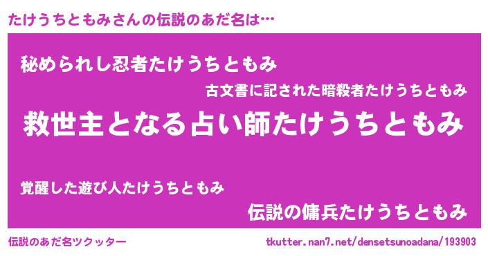 | ヒーロー風カッコイイあだ名 | 『天空の使者たけうちともみ』 |