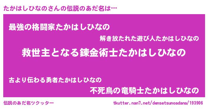 | ヒーロー風カッコイイあだ名 | 『天空の使者たかはしひなの』 |