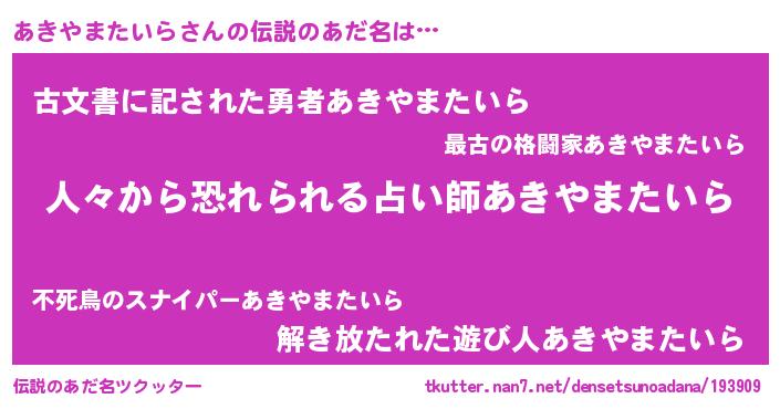 | ヒーロー風カッコイイあだ名 | 『正義の使者あきやまたいら』 |