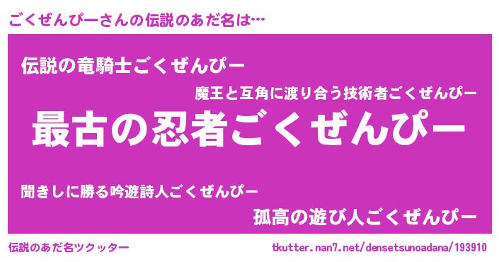 | ファンタジー風あだ名 | 『エターナルゴクゼンピーー』 |