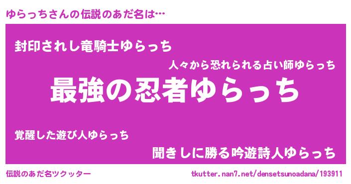 | 意味不明あだ名 | 『ゆらっちフォーエバー』『自称ゆらっち』 |