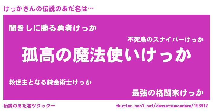 男性向けラノベタイトル風あだ名 | 『魔弾の王とけっか』『緋弾のケッカ』 |