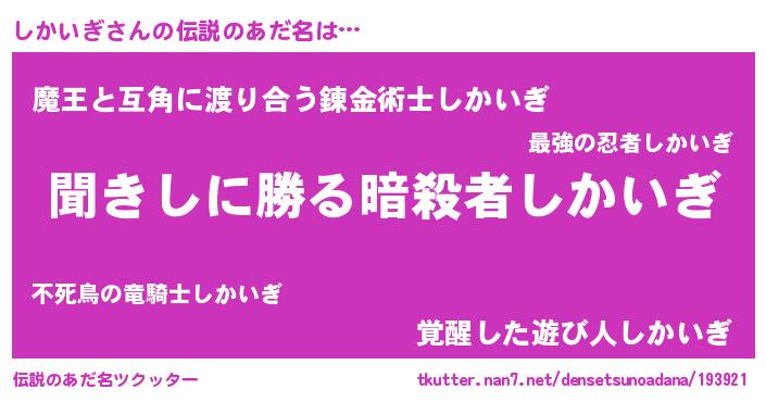 | 意味不明あだ名 | 『住所不定無職しかいぎ(53歳)』 |