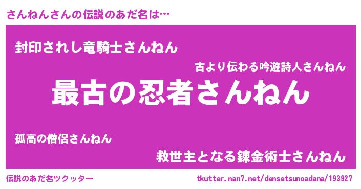 意味不明あだ名 | 『なめこ科さんねん属』『自称さんねん』 |