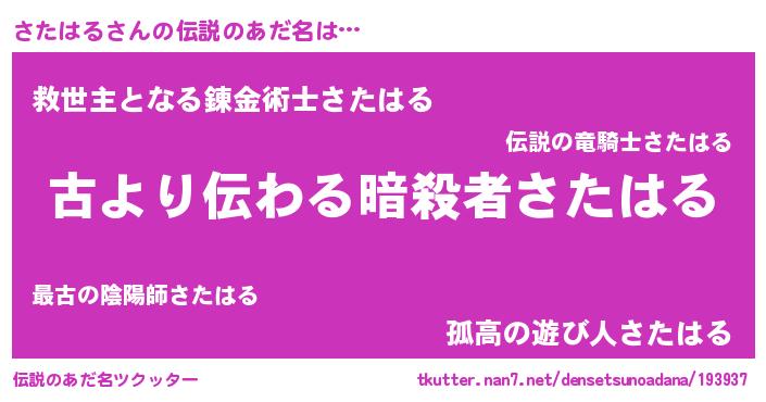 | 女子向けラノベタイトル風あだ名 | 『闇のさたはる』 |