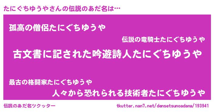 | ヘコむあだ名 | 『たにぐちゆうや(笑)』『たにっ子』 |