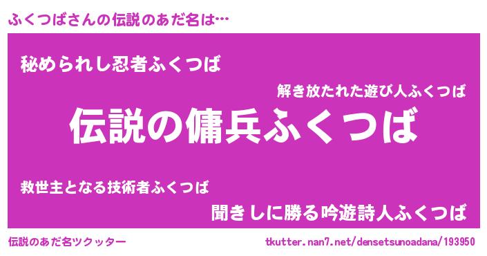 | 男性向けラノベタイトル風あだ名 | 『緋弾のフクツバ』『魔弾の王とふくつば』 |