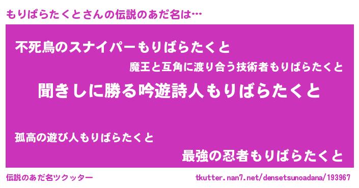 | ヘコむあだ名 | 『もりばらたくと(小並感)』『もりっふぃ~』 |