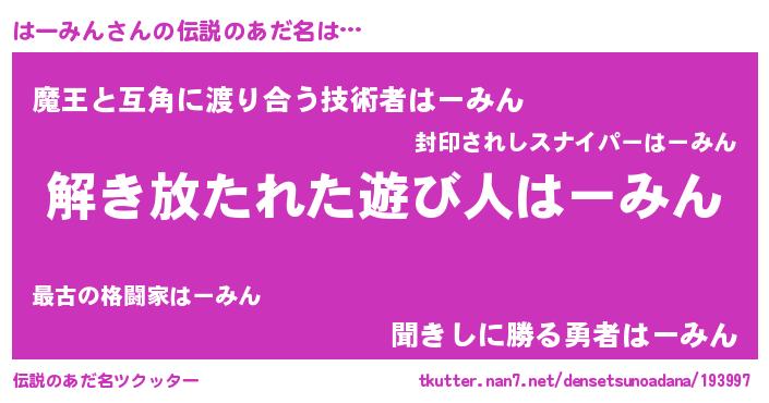 | ヘコむあだ名 | 『はーぷりん』『はーみん(小並感)』 |