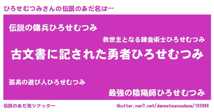 | ヒーロー風カッコイイあだ名 | 『ネオヒロセムツミ』『仮面ヒロダー』 |