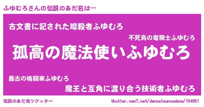 | 男性向けラノベタイトル風あだ名 | 『ダンジョンにふゆむろを求めるのは間違っているだろうか』 |