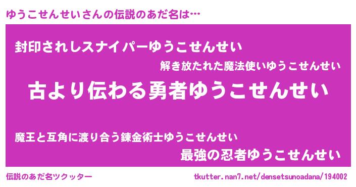 | 男性向けラノベタイトル風あだ名 | 『ゆうこせんせいという概念が存在しない退屈な世界 』 |