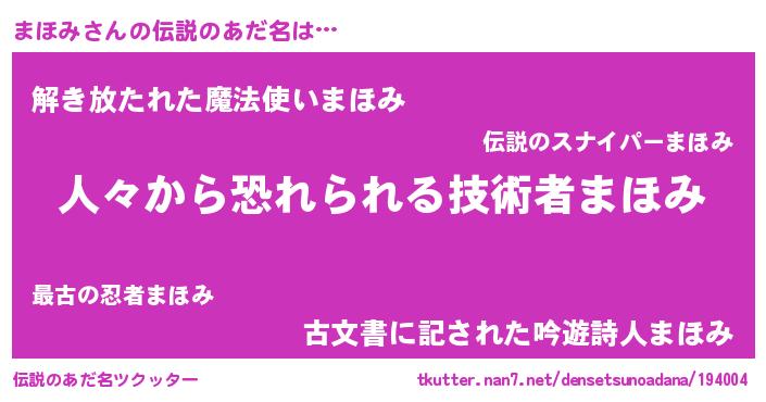 | ヒーロー風カッコイイあだ名 | 『仮面マホダー』『愛の使者まほみ』 |