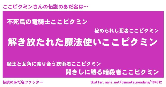 | 意味不明あだ名 | 『自称ここピクミン』 |