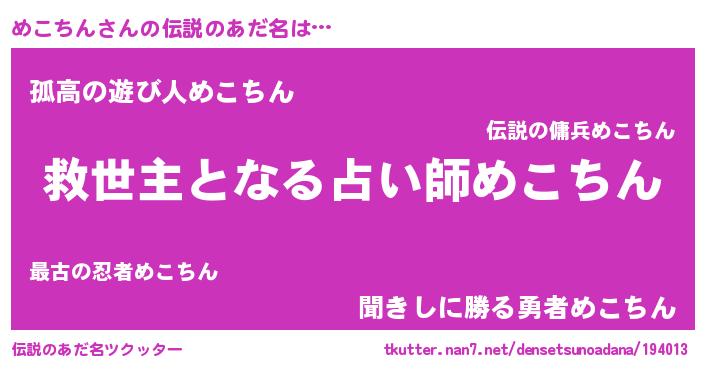 | 欧米人風あだ名 | 『ダニエルめこちん』『ウサインめこちん』 |