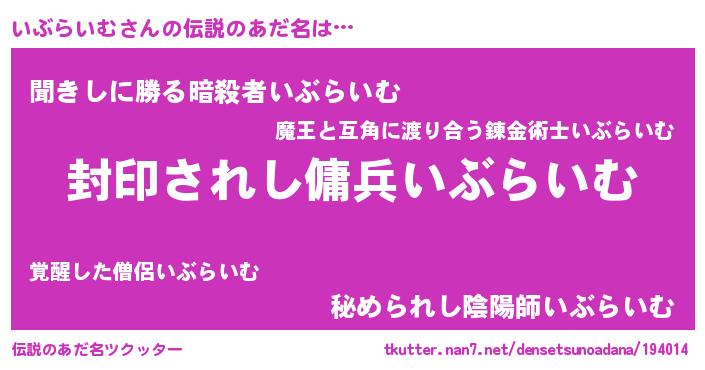 | 意味不明あだ名 | 『自称いぶらいむ』『ペロリンいぶらいむ』 |