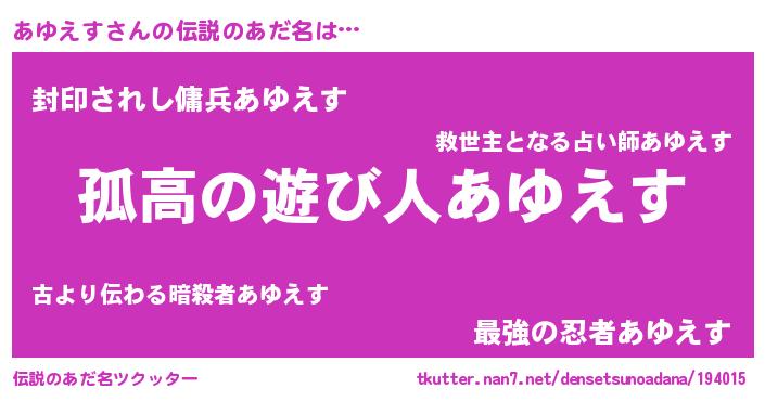 | 男性向けラノベタイトル風あだ名 | 『アユエススレイヤー』 |