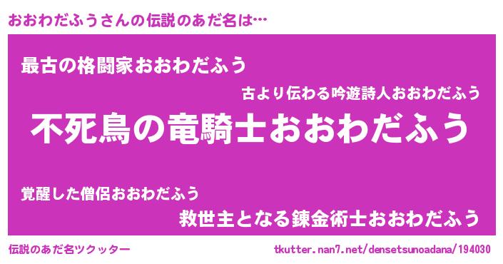 | 意味不明あだ名 | 『自称おおわだふう』 |