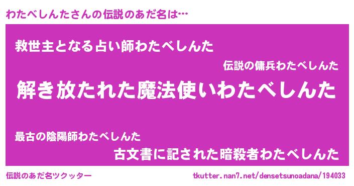 | 欧米人風あだ名 | 『アンジェラ・わたべしんた』 |
