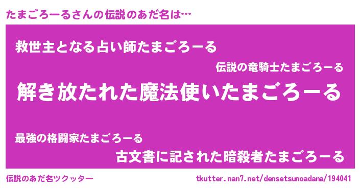 | 胡散臭い通販商品みたいなあだ名 | 『伝統あるサプリメント…その名も「たまごろーる」』 |