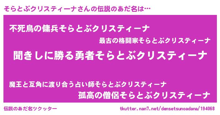 | ヘコむあだ名 | 『そらとぶクリスティーナ(震え声)』 |