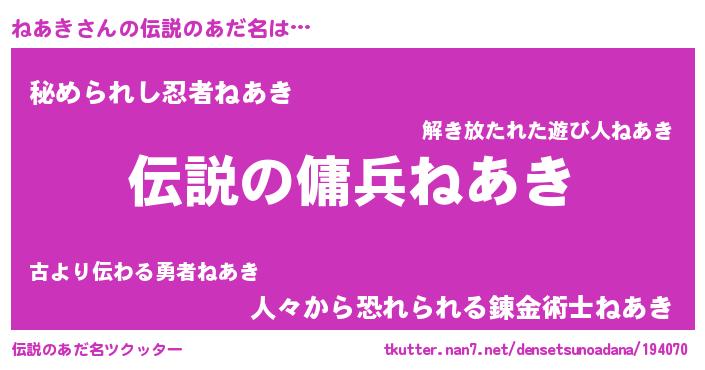 | ヒーロー風カッコイイあだ名 | 『スーパーネアキ』『ウルトラねあきマン』 |