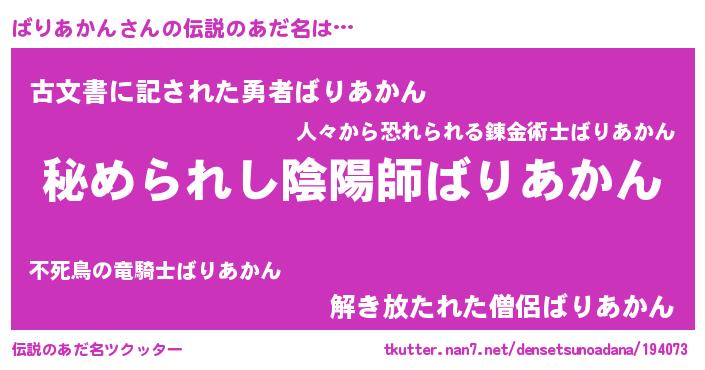 | ファンタジー風あだ名 | 『エターナルバリアカンー』 |