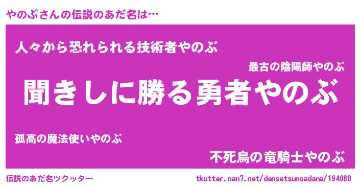 | 男性向けラノベタイトル風あだ名 | 『ヤノブスレイヤー』 |