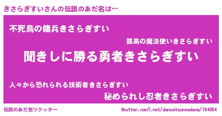 | 男性向けラノベタイトル風あだ名 | 『魔弾の王ときさらぎすい』 |