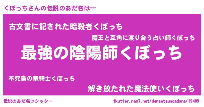 | ファンタジー風あだ名 | 『エターナルクボッチー』『ゼクボトゥ』 |