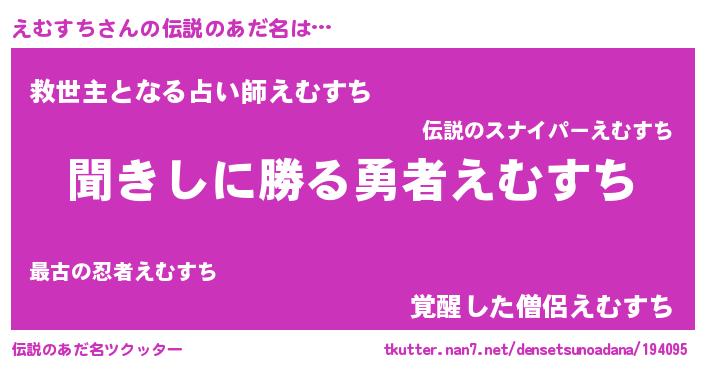 | 意味不明あだ名 | 『永久保存えむすち』『自称えむすち』 |