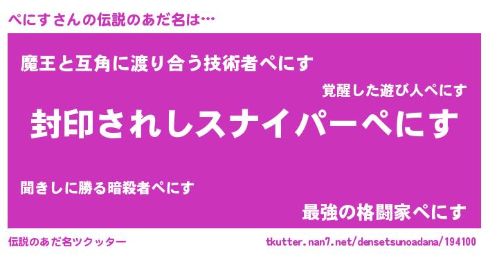 | 意味不明あだ名 | 『住所不定無職ぺにす(95歳)』『自称ぺにす』 |