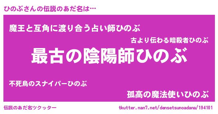 | ファンタジー風あだ名 | 『エターナルヒノブー』『クインヒット』 |