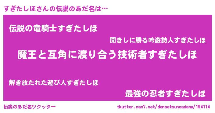 | ポケモン風あだ名 | 『スギゴンZ』『スックウザ』 |