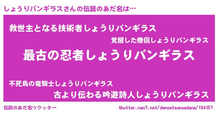 | ヒーロー風カッコイイあだ名 | 『ウルトラしょうりバンギラスマン』 |