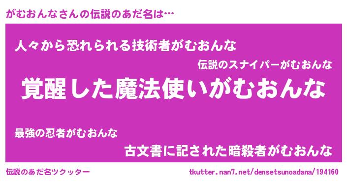 | 男性向けラノベタイトル風あだ名 | 『がむおんなに滅ぼされるだけの簡単なお仕事です』 |