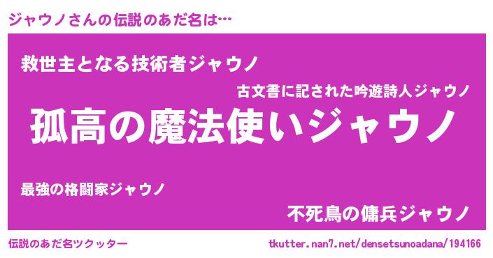 | 胡散臭い通販商品みたいなあだ名 | 『信頼と実績のサプリメント…その名も「ジャウノ」』 |