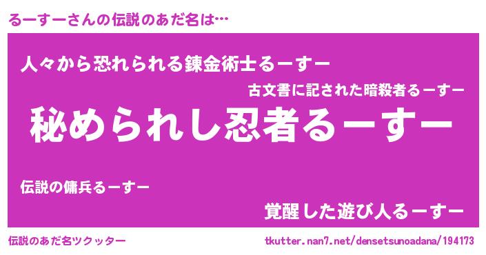 | 意味不明あだ名 | 『るーすーフォーエバー』『自称るーすー』 |