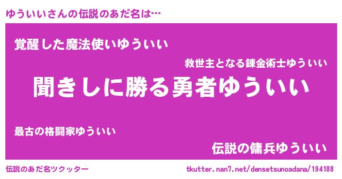 | ヘコむあだ名 | 『ゆういい(震え声)』『ゆうぷりん』 |