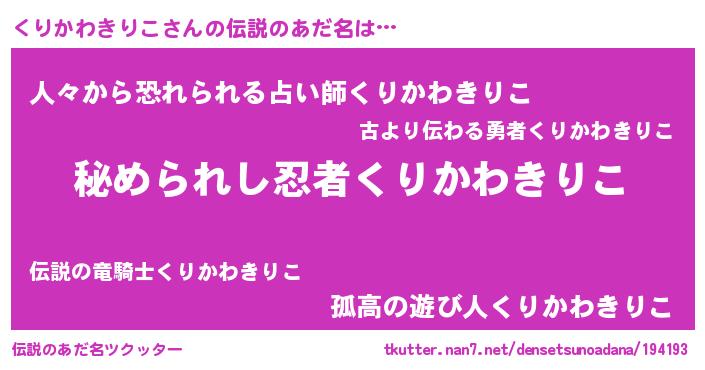 | 意味不明あだ名 | 『くりかわきりこフォーエバー』 |
