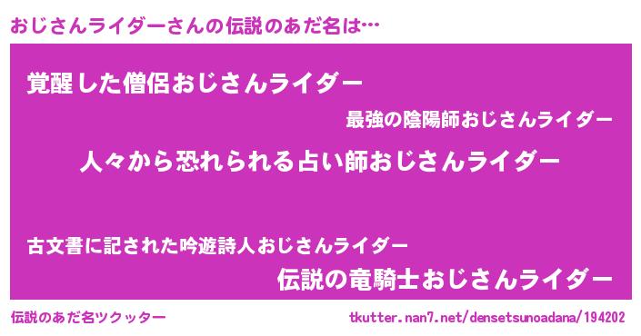 | ヒーロー風カッコイイあだ名 | 『正義の使者おじさんライダー』 |